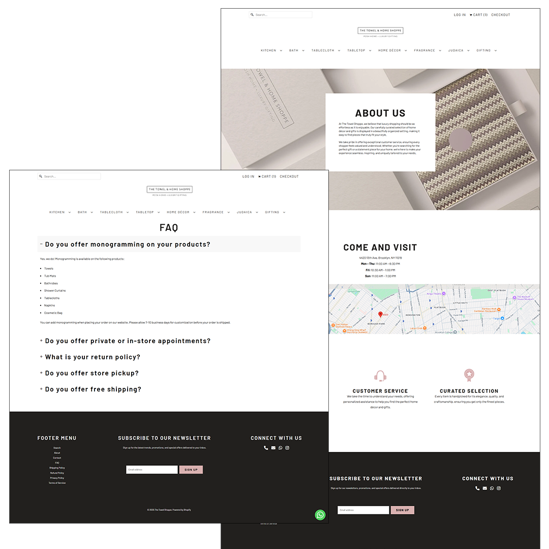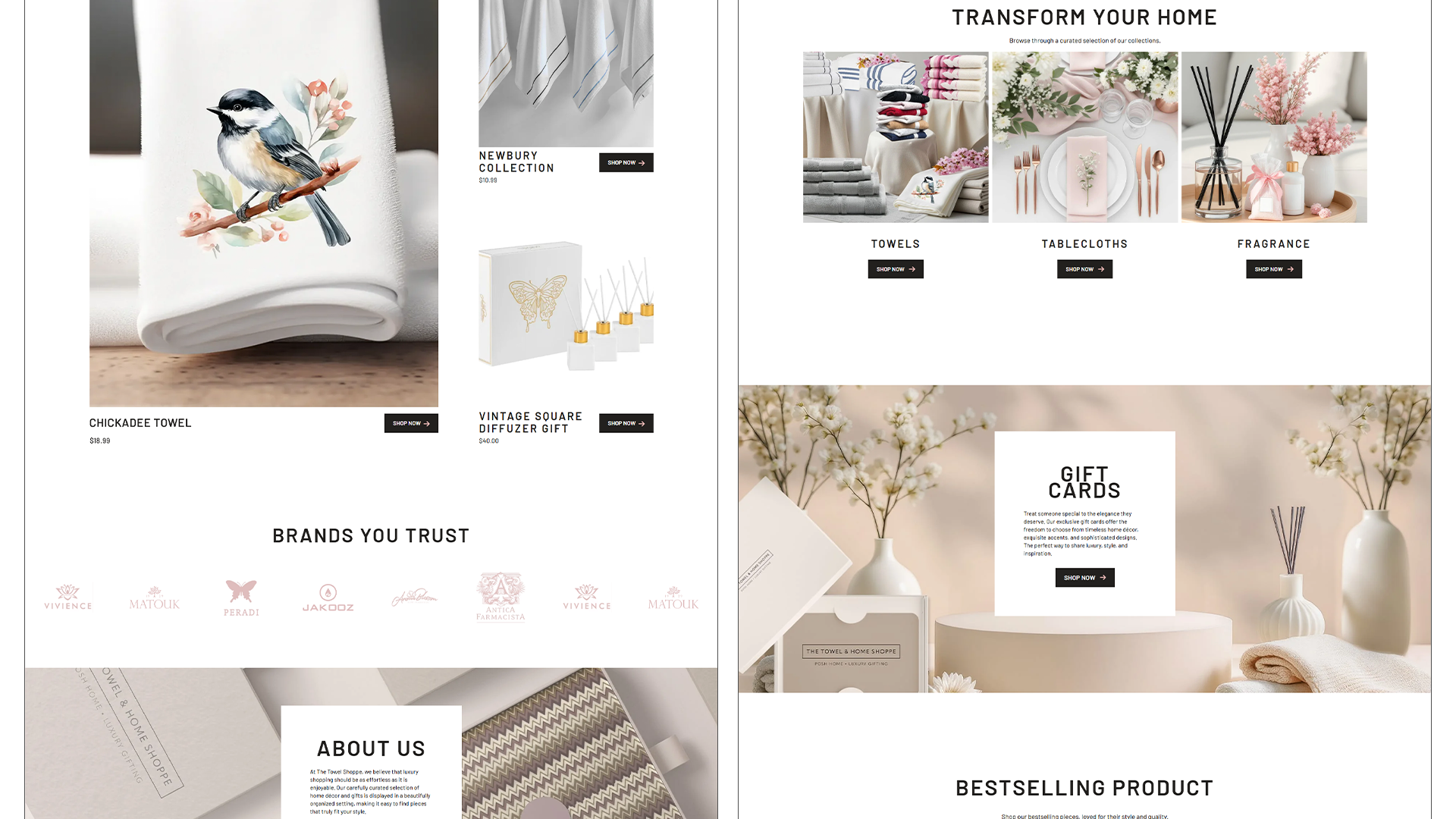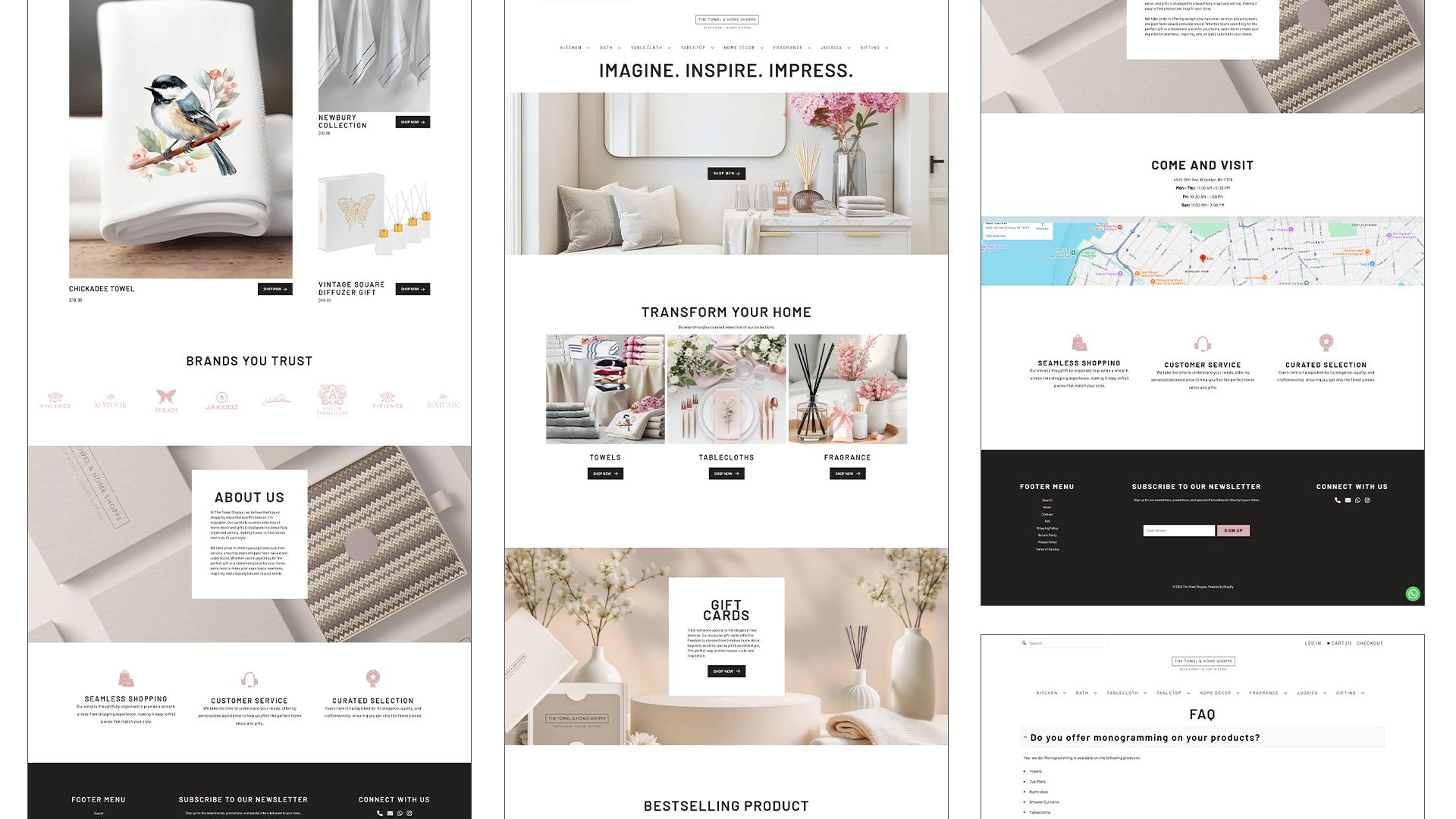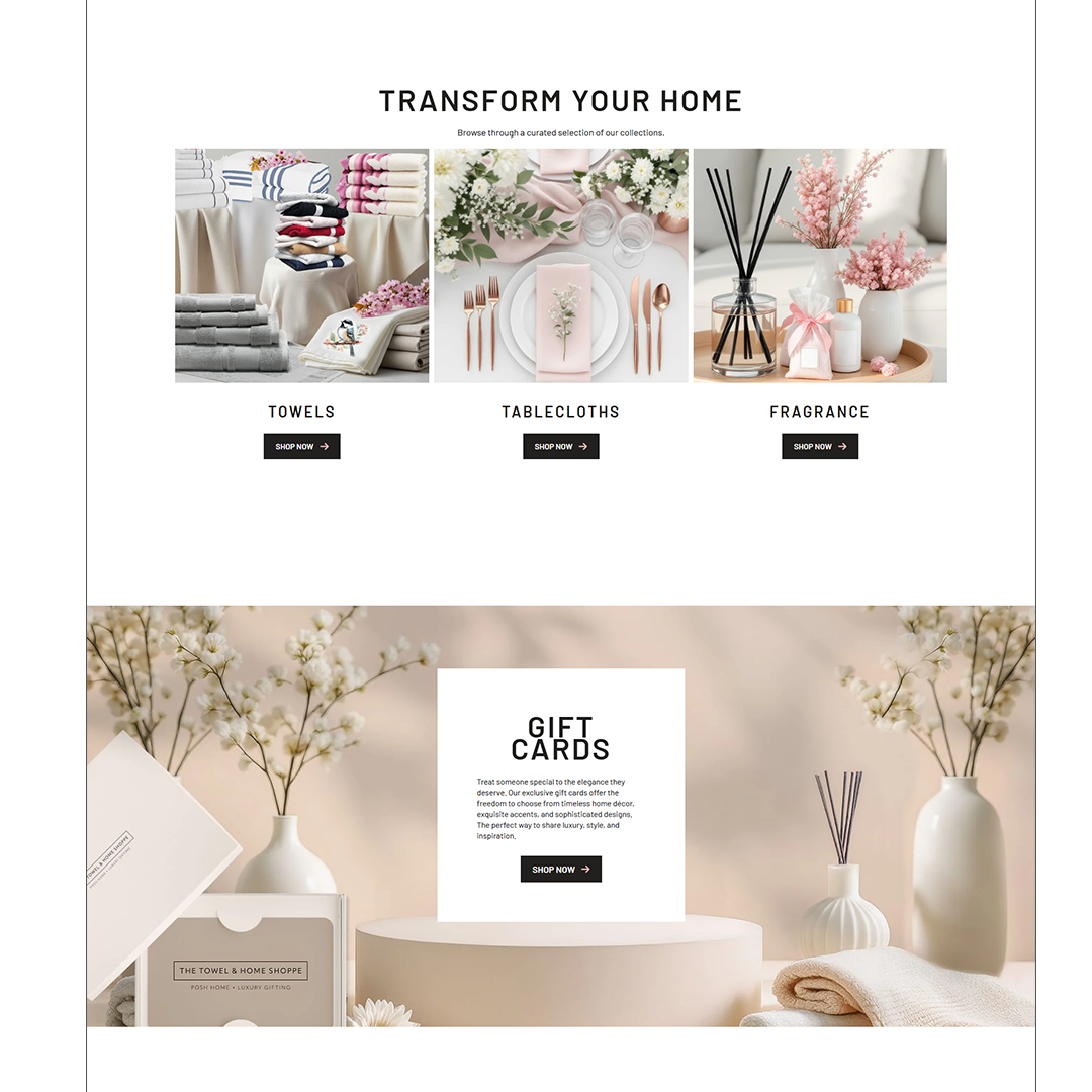 A custom website for a luxury home décor brand, featuring a clean, sophisticated layout and an elegant color palette. Curated product collections are highlighted with clear visual hierarchy, while refined typography and subtle accents create an inviting, effortless shopping experience.